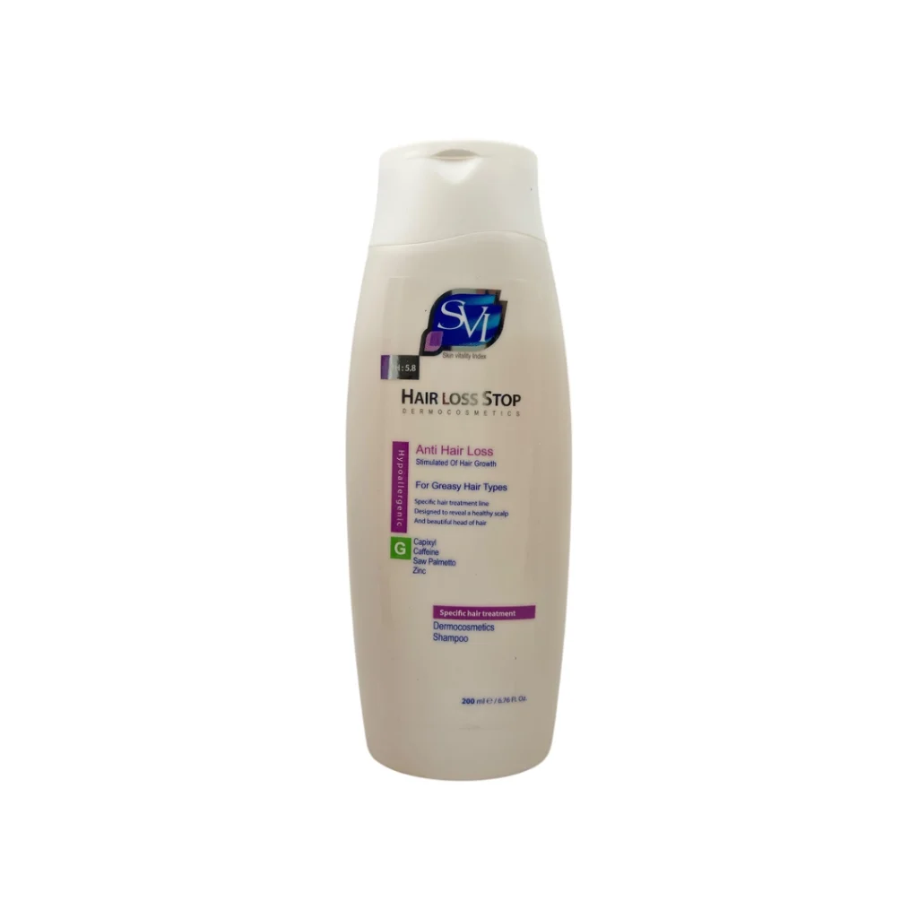 شامپو ضد ریزش HAIR LOSS STOP اس وی آی حجم ۲۰۰ میلیلیتر، محصولی موثر برای مقابله با ریزش موهای چرب است. این شامپو با ترکیبات ویژه خود، چربی اضافی پوست سر را کنترل کرده و پوست سر را پاکسازی عمیق میکند تا ریشه موها تقویت شود.