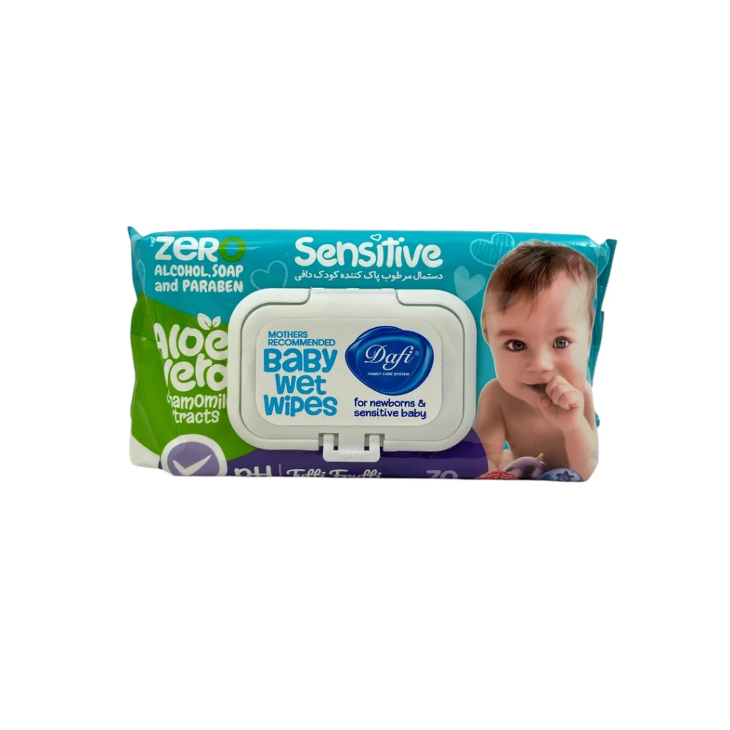 دستمال مرطوب پاک کننده کودک حساس فاقد اسانس دافی ۷۰ برگی، محصولی ملایم و ایمن برای پاکسازی پوست حساس کودکان است. این دستمالها بدون اسانس و مواد حساسیتزا طراحی شدهاند تا پوست ظریف کودک را بدون ایجاد تحریک و خشکی، بهخوبی تمیز کنند.
