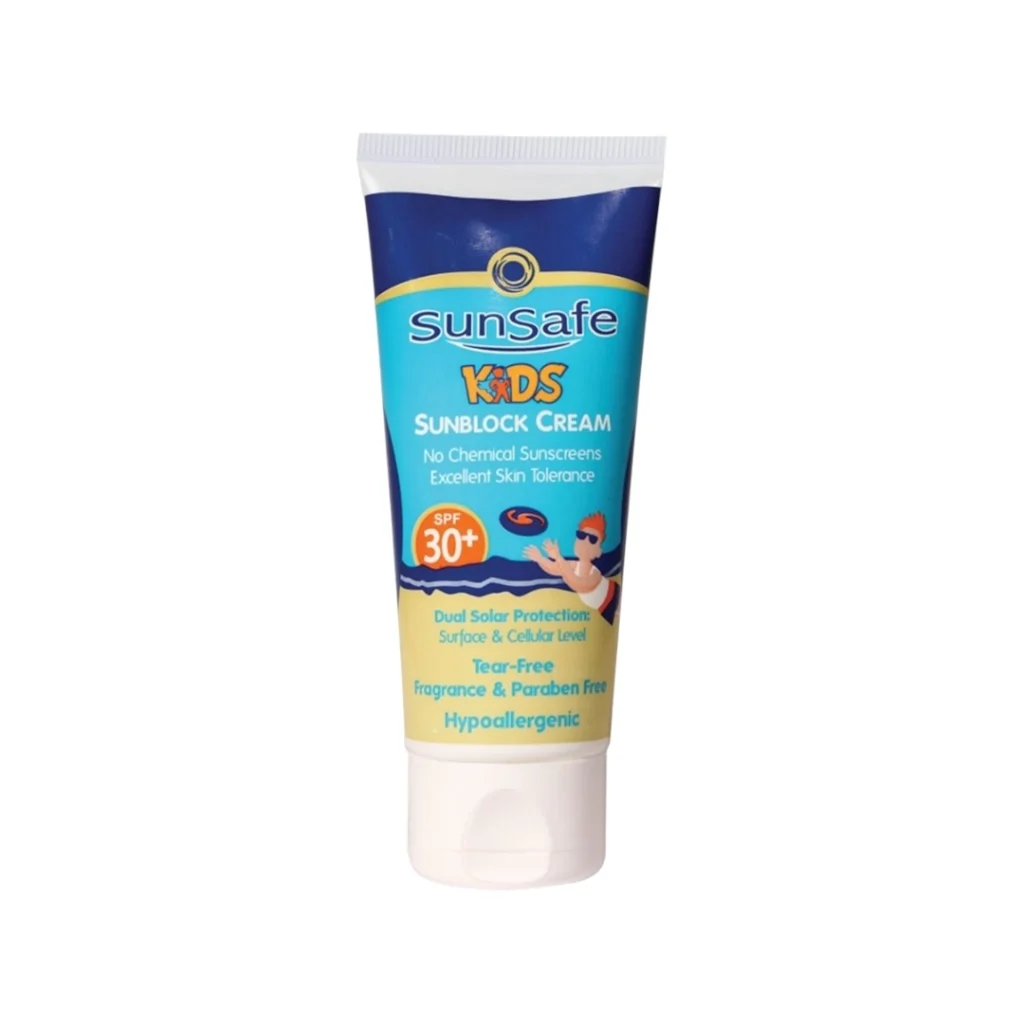 کرم ضد آفتاب SPF30 سان سیف؛ محافظت ایمن و ملایم برای پوست حساس کودکان.